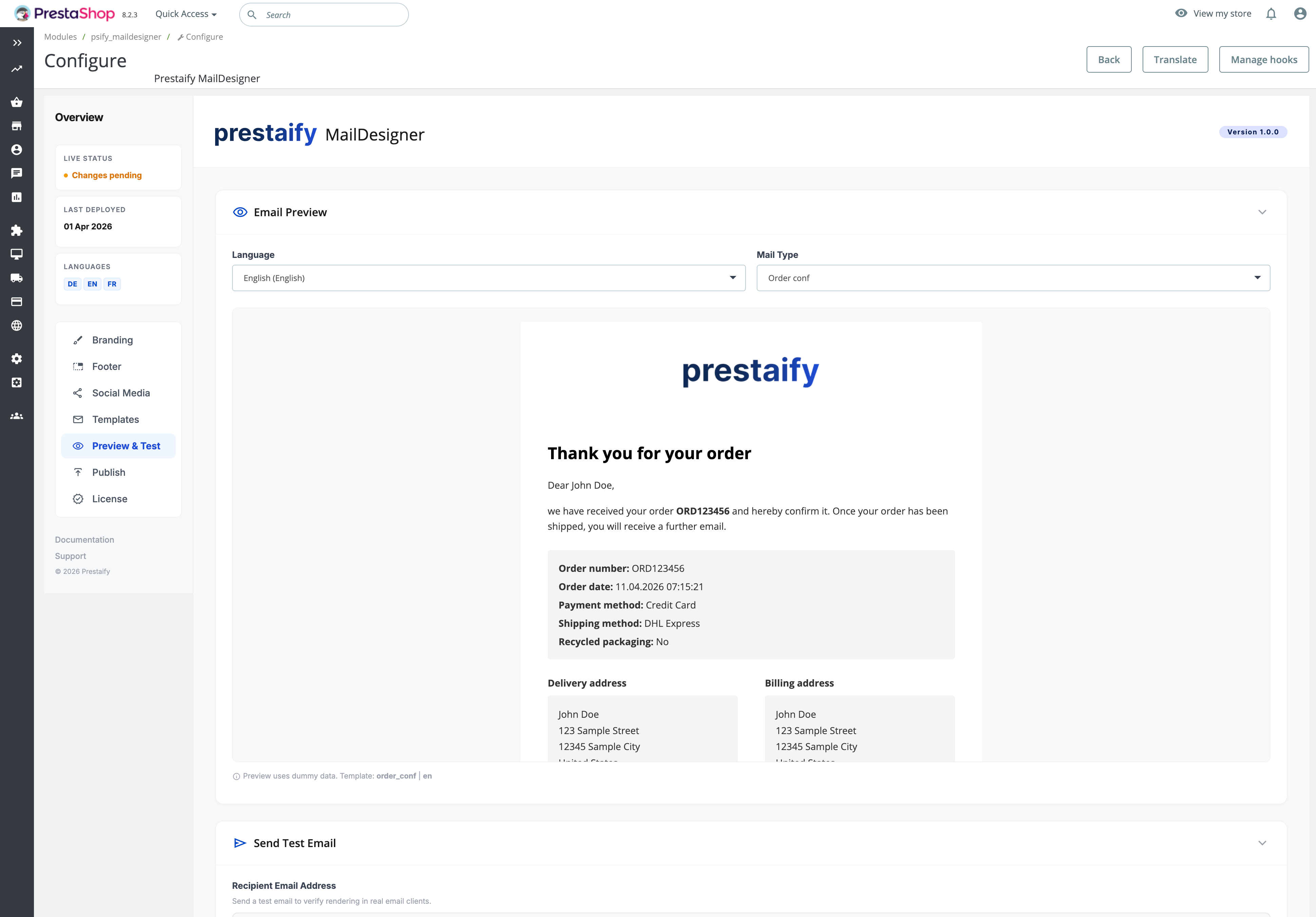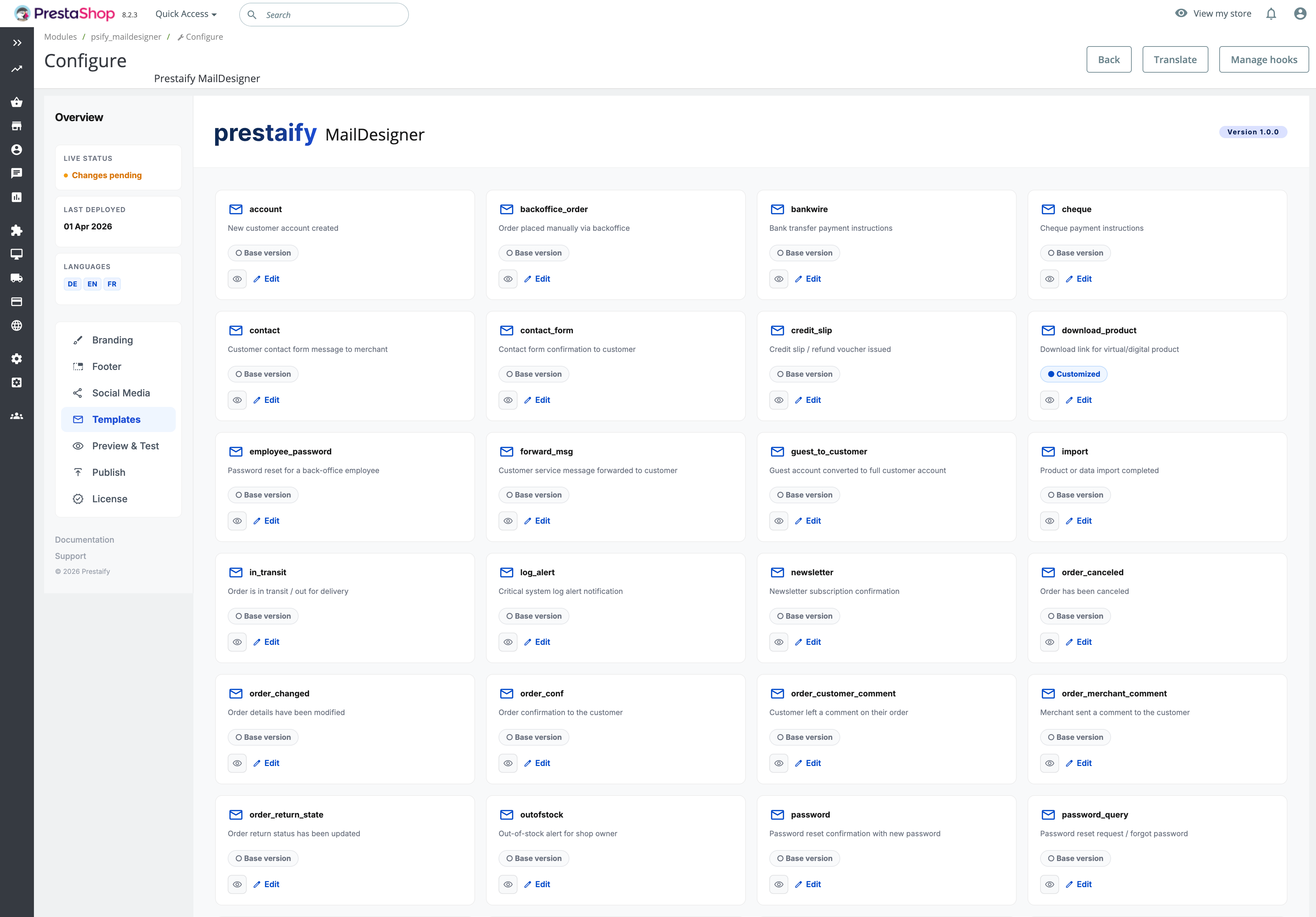 With prestaify MailDesigner, you manage all transactional emails from a single place — visually, safely, and without touching a line of code.