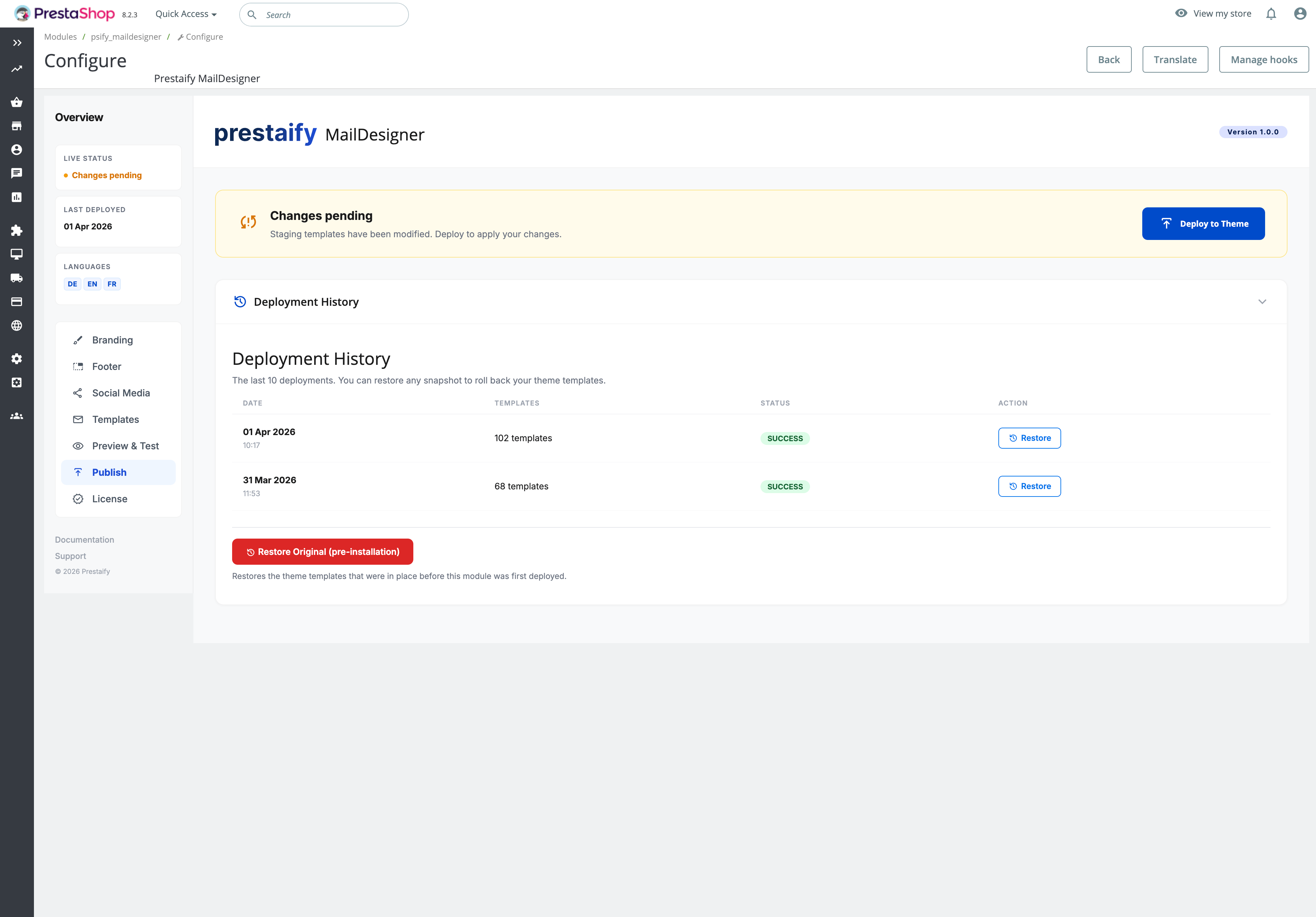 PrestaShop updates no longer overwrite your customizations. Your changes stay.